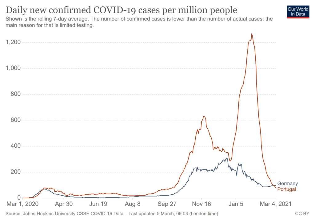 Auch die Lage in den Krankenhäusern dort ist entspannt. Wie hoch sind die Corona-Zahlen in Portugal aktuell. Womöglich ein Verdienst der. So sehen die Fallzahlen zu Infektionen Inzidenz und Impfung nach Angaben der Johns-Hopkins-Universität aus Stand 22092021.